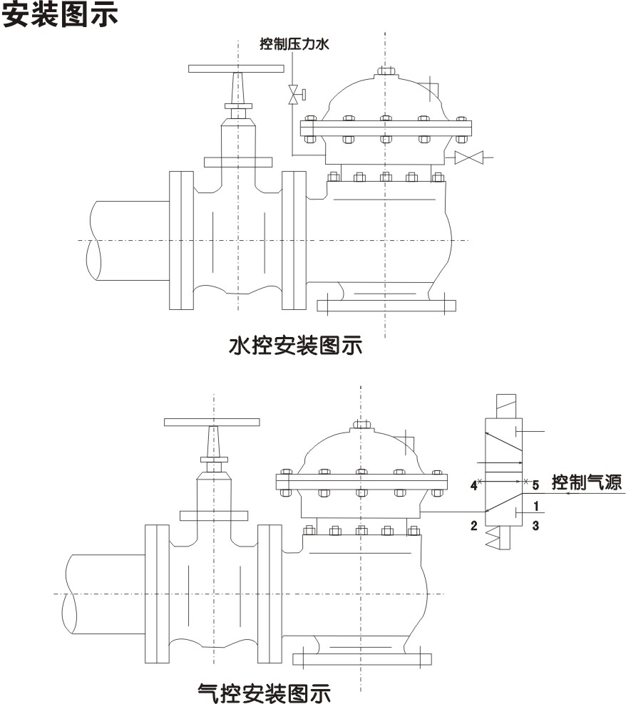 ◎主閥上裝有一個常閉電磁閥和球閥,或手動換向閥。